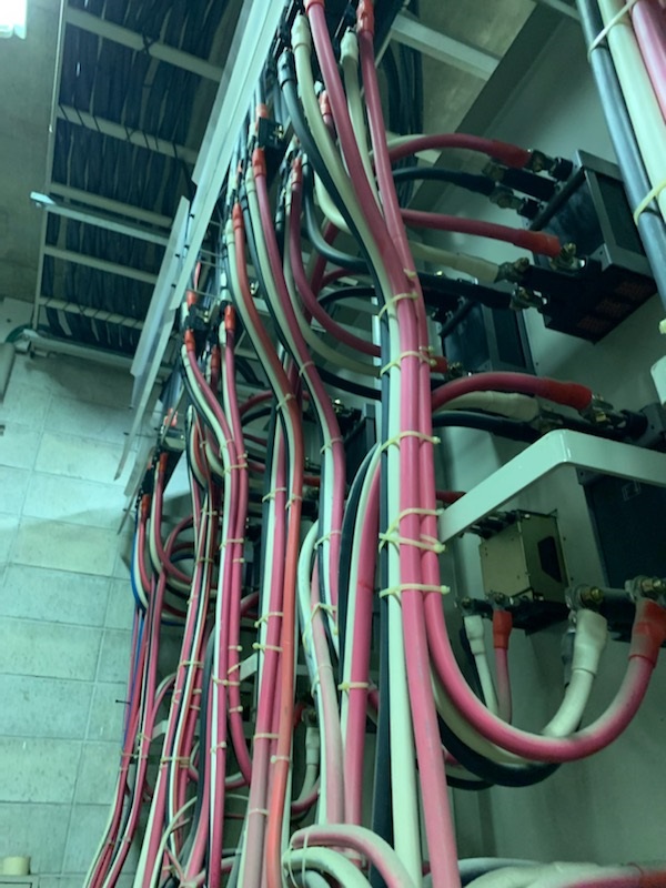 下の写真は敷設した新しい電線を電気メーターに取り付けています。