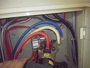 施工内容としまして、50Aのブレーカーを取り付け26KWから17Kまで減設をします。